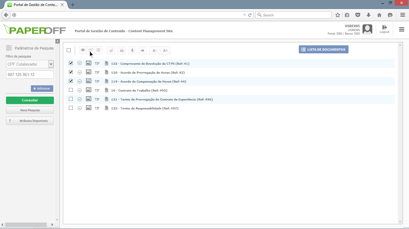 2- Na lista de resultados, selecione os documentos que deseja exportar;