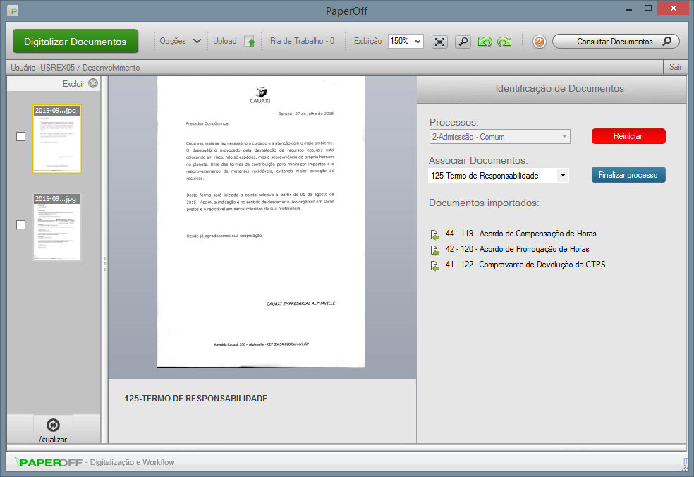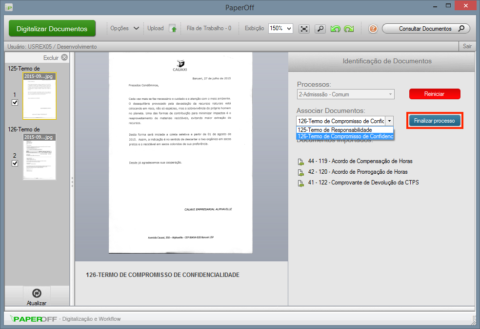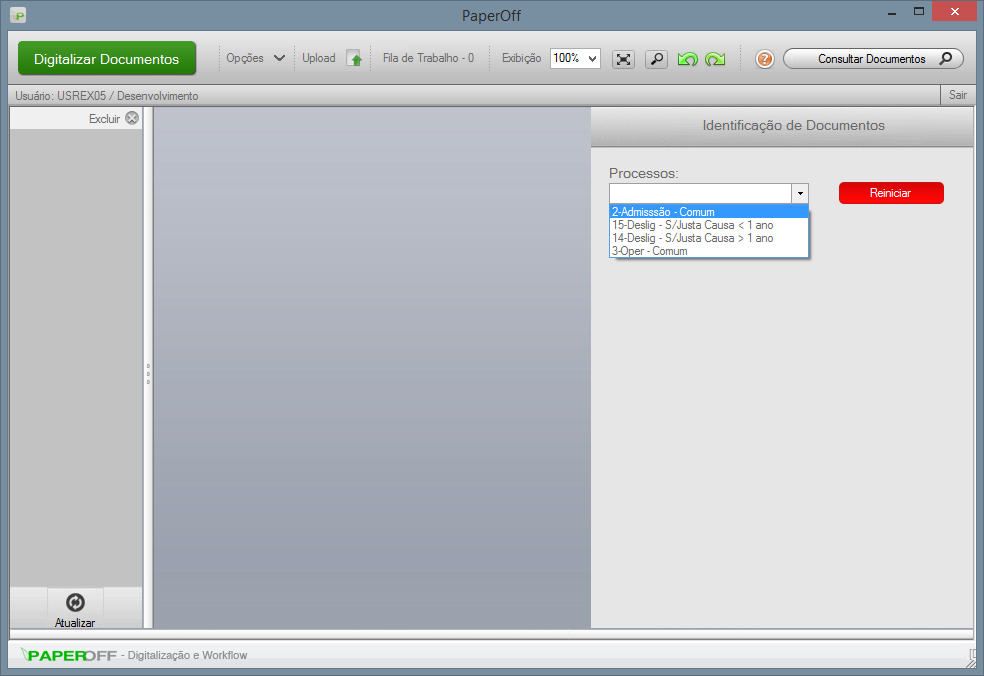 5- Agora abra o software de captura da PAPEROFF e selecione o processo ao qual deseja associar os documentos;