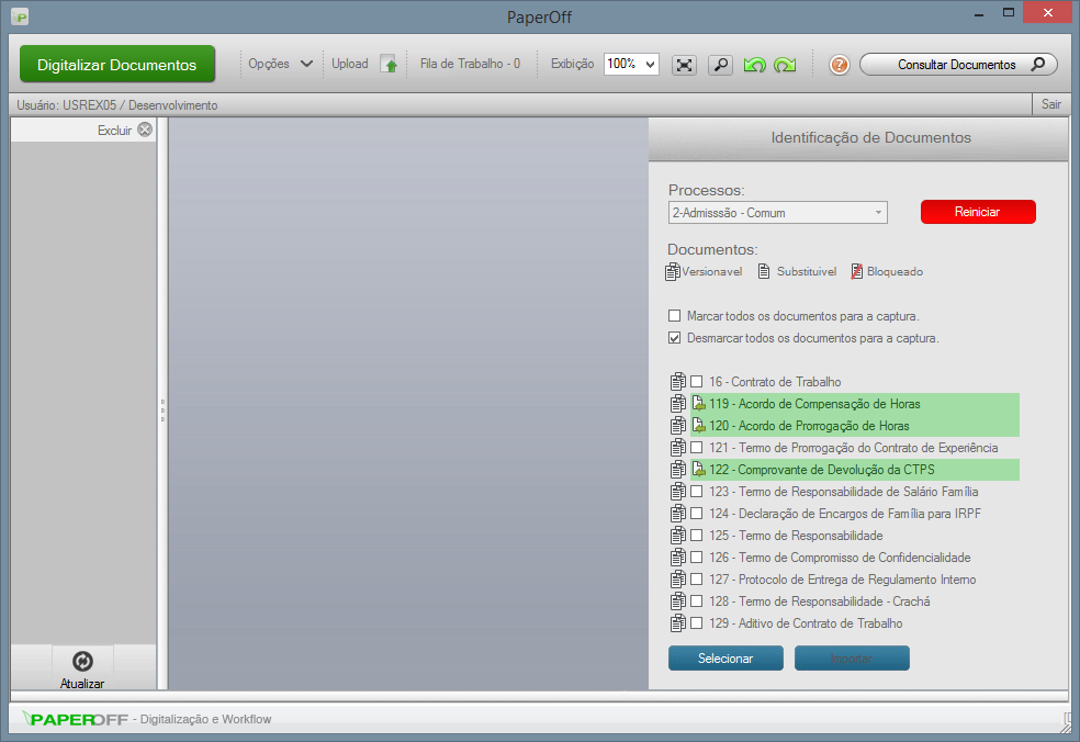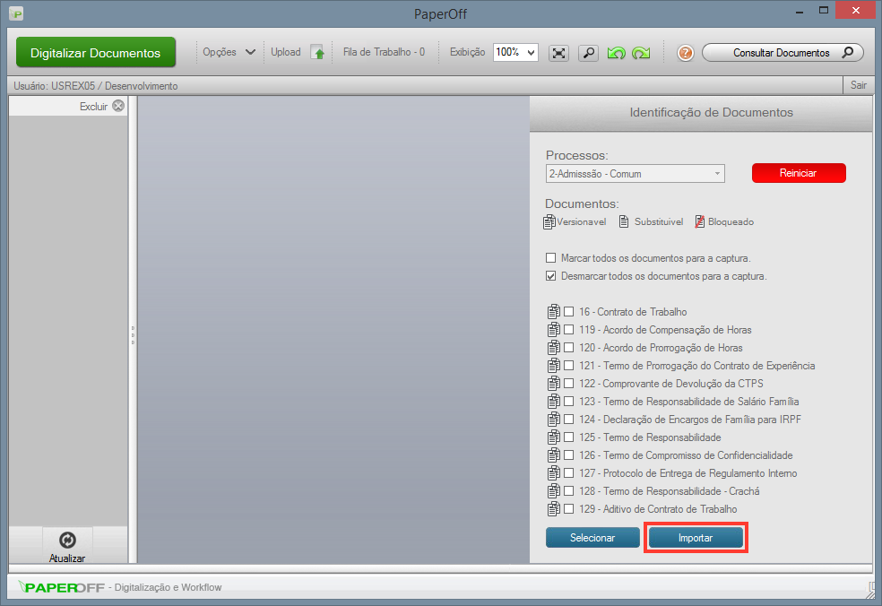 7- Os documentos importados deverão estar destacados conforme a imagem a seguir;